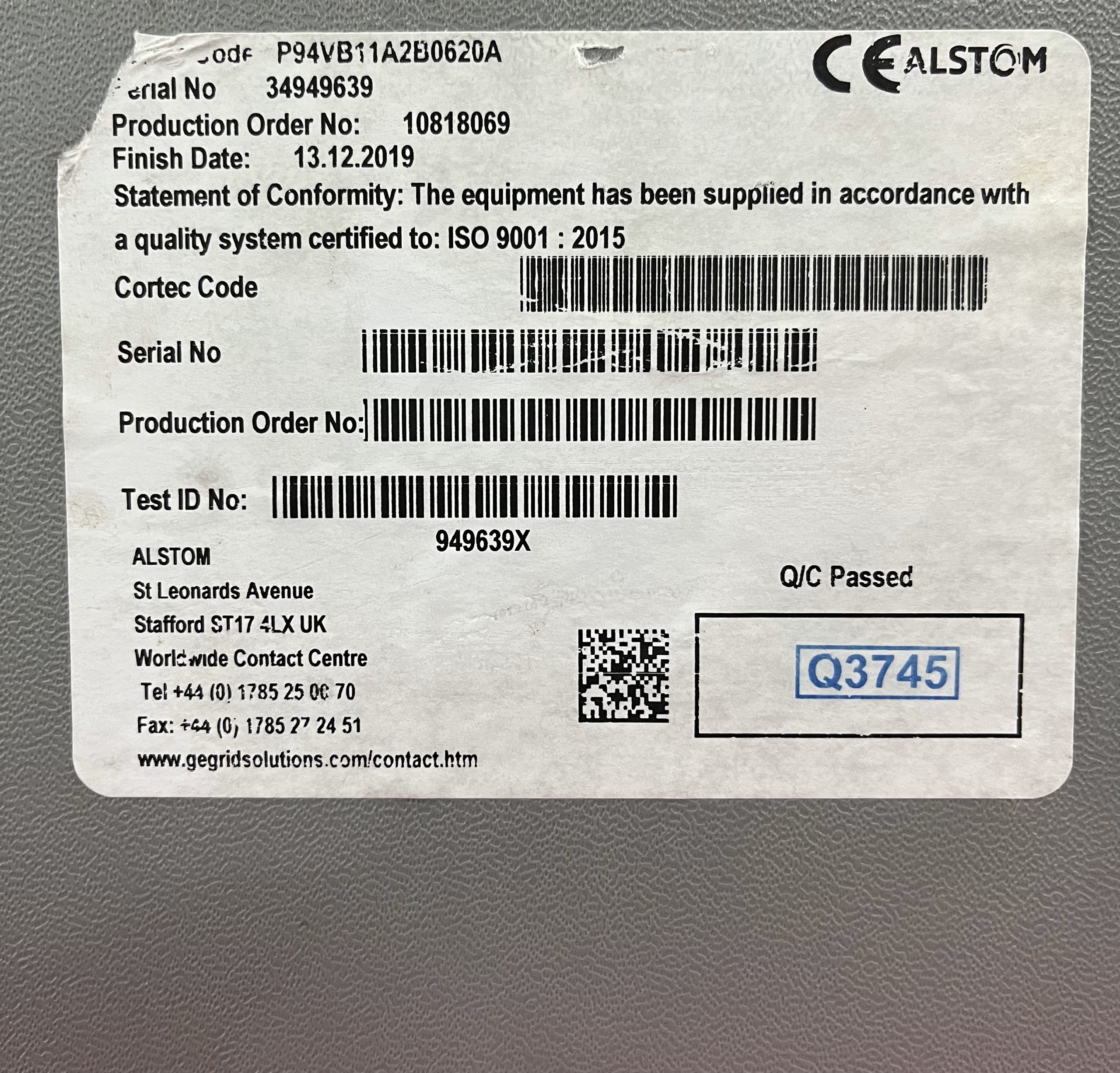 ALSTOM Voltage Control Relay P94V quantity